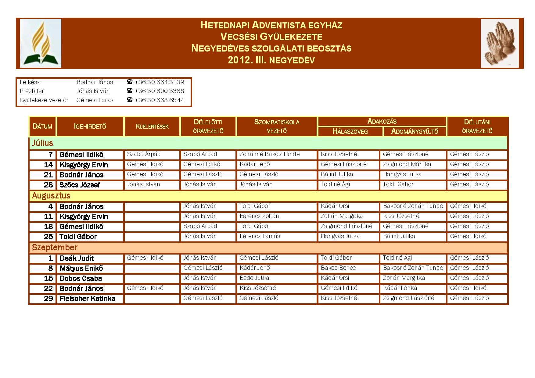 Könyörögjünk érte közösen. A vecsési gyülekezetben 2012. január 13-ától minden nap 2012. január 22-éig tart.